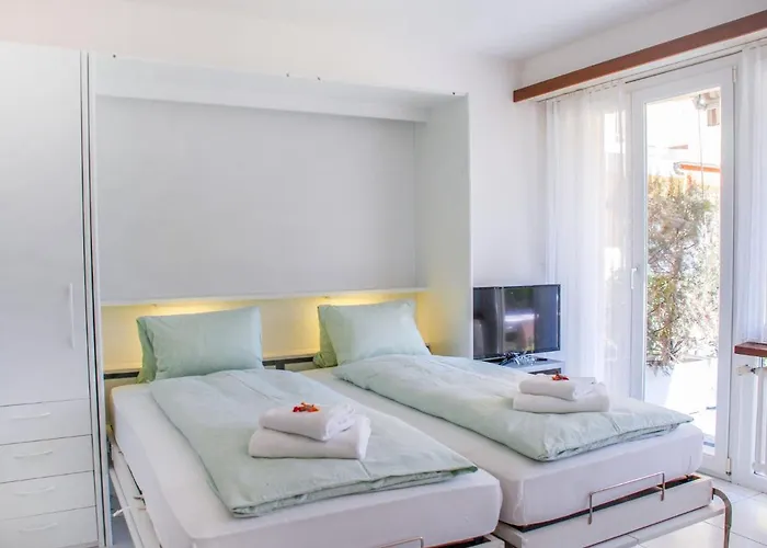 Apartment Residenza Lido Appartment 008 By Interhome Locarno, som ligger cirka 5 minuters promenad från Chiesa della Sacra Famiglia, erbjuder enkel tillgång till olika turistattraktioner i närheten. Denna strandnära lägenhet har en terrass och en allmän parkering i närheten.
